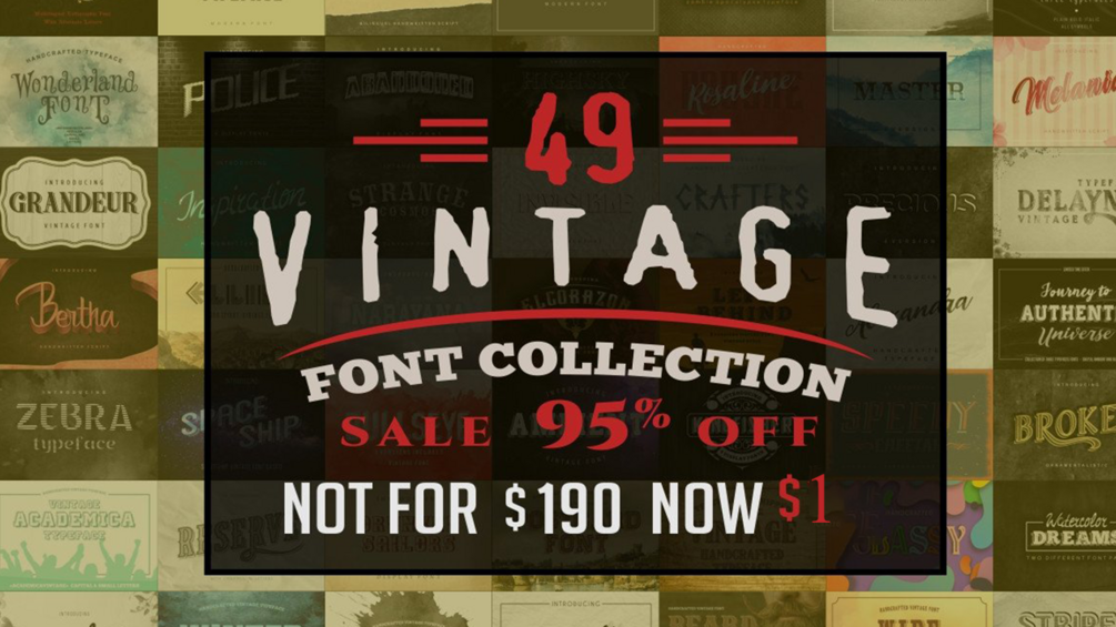The Vintage Font Collection Bundle comes with 49 vintage and unique, high quality fonts. You can get all the fonts for just $3 and save $180!